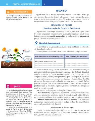 1. Identifică, în imaginea alăturată, substanțele utilizate în fotosinte-