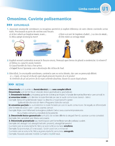 1. Asociază enunțurile următoare cu imaginea potrivită și explică diferența de sens dintre cuvintele scrise
