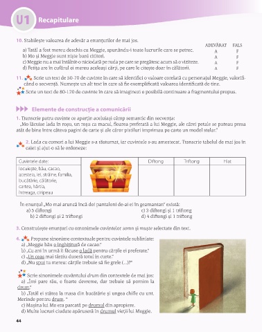 2. Lada cu comori a lui Meggie s-a răsturnat, iar cuvintele s-au amestecat. Transcrie tabelul de mai jos în
