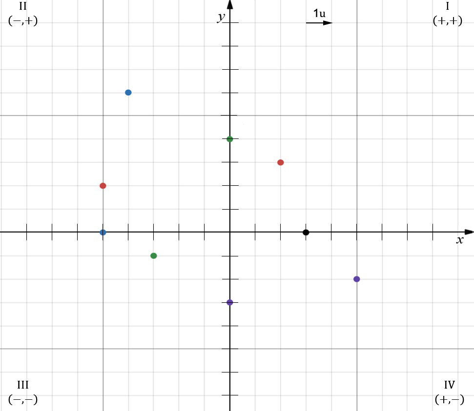 Reprezentați punctele în sistemul de axe ortogonale, în cadranele sau pe axele potrivite: