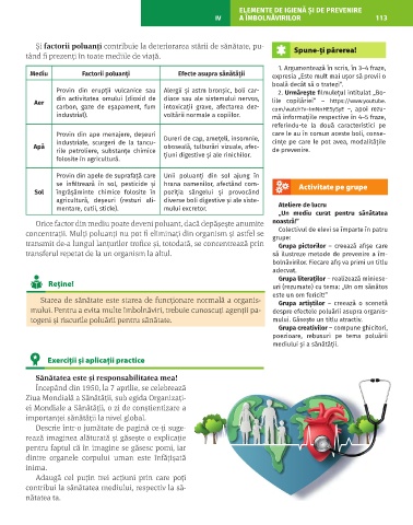 se infiltrează în sol, pesticide și hrana oamenilor, afectând com- Activitate pe grupe