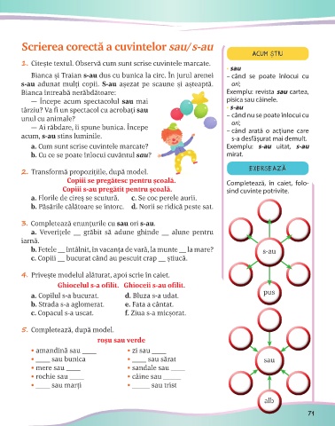 3. Completează enunţurile cu sau ori s-au.