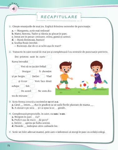 2. Transcrie în caiet textul de mai jos şi completează-l cu semnele de punctuaţie potrivite.