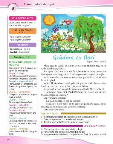 Intervievează florile din gră- 2. Povestește oral textul, renunțând la dialog.