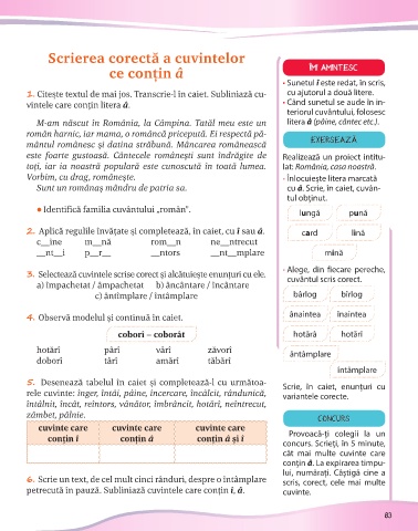 Sunt un românaș mândru de patria sa. cu â. Scrie, în caiet, cuvân-