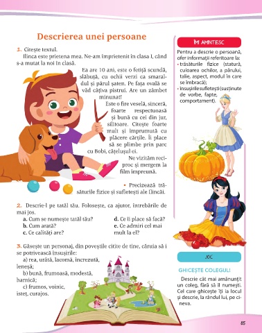 1. Citește textul. Pentru a descrie o persoană,