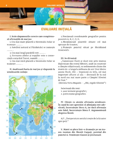 I. Scrie răspunsurile corecte care completea- 1. Precizează coordonatele geografice pentru