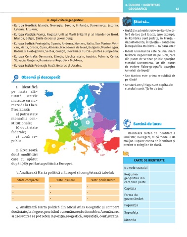 3. Analizează Harta politică a Europei și completează tabelul: Regiunea