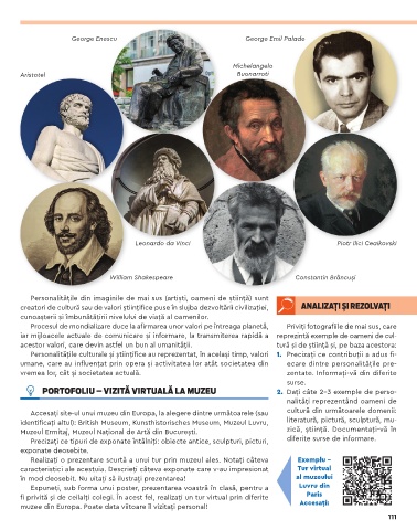 PORTOFOLIU – VIZITĂ VIRTUALĂ LA MUZEU 2. Dați câte 2–3 exemple de perso-