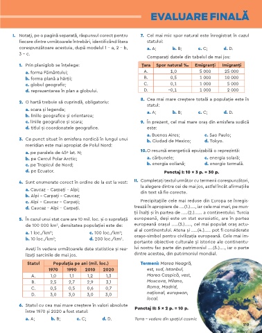 1. Prin planiglob se înțelege: Țara Spor natural ‰ Emigranți Imigranți