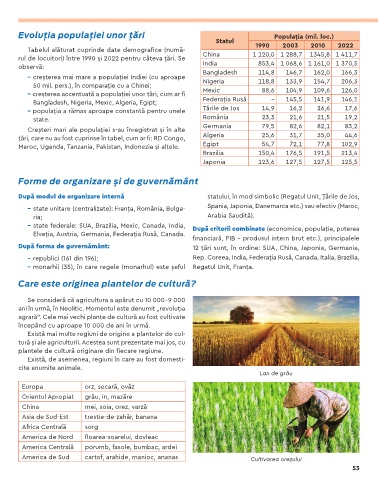 Evoluția populației unor țări Populația (mil. loc.)