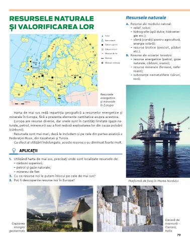 1. Utilizând harta de mai sus, precizați unde sunt localizate resursele de: