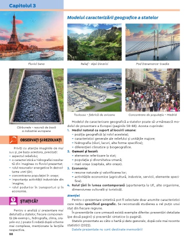 tă (de exemplu, hidrografia, clima, ora- (pe două pagini) și prezentări sintetice (o pagină).