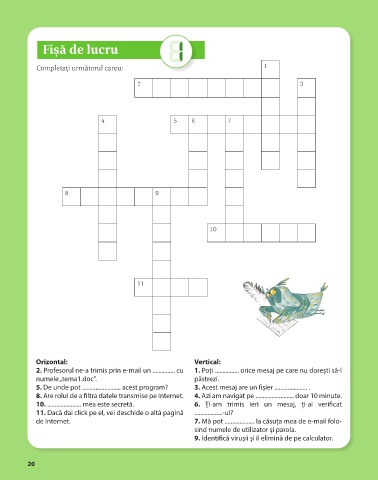 8. Are rolul de a filtra datele transmise pe Internet. 4. Azi am navigat pe .......................... doar 10 minute.