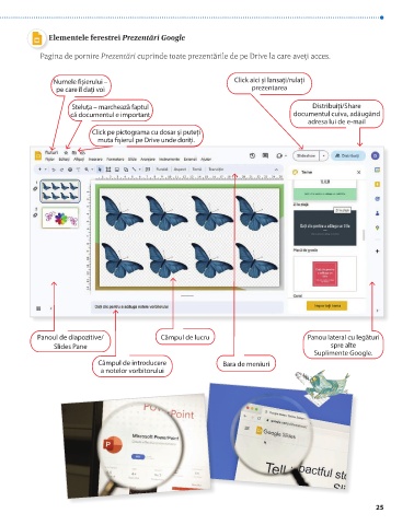 Elementele ferestrei Prezentări Google