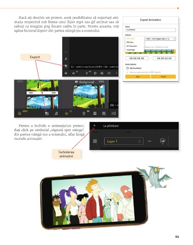 Dacă ați deschis un proiect, aveți posibilitatea să exportați ani-