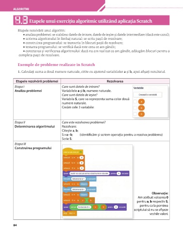 Etapele unui exercițiu algoritmic utilizând aplicația Scratch