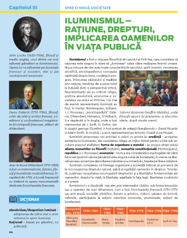 influenți gânditori ai Iluminismului. rațiunea este singura în stare să „ilumineze” calea către realizarea fericirii umane.