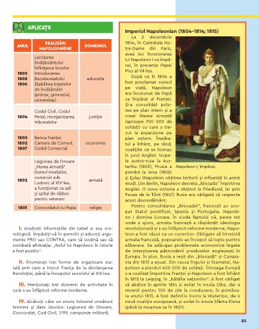 I. Analizați informațiile din tabel și axa cro- revoluționară și s-au înfăptuit reforme moderne, Napo-