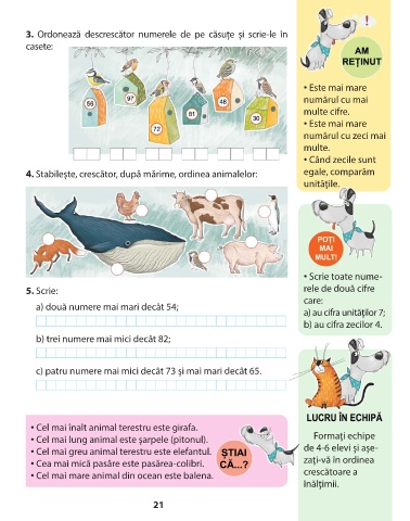 4. Stabilește, crescător, după mărime, ordinea animalelor: egale, comparăm