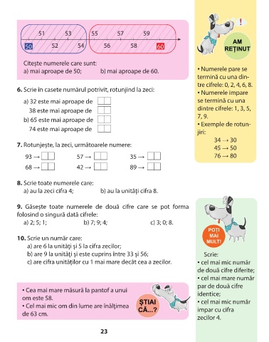 6. Scrie în casete numărul potrivit, rotunjind la zeci: • Numerele impare