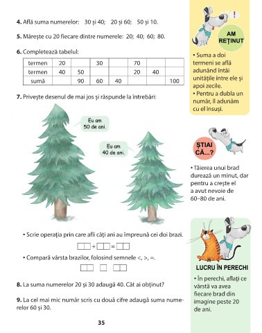 • Scrie operaţia prin care afli câţi ani au împreună cei doi brazi.