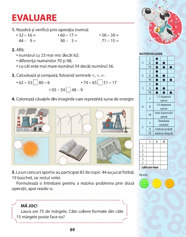 • numărul cu 23 mai mic decât 62; AUTOEVALUARE
