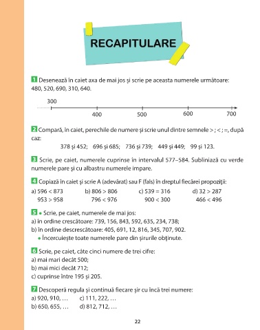 3 Scrie, pe caiet, numerele cuprinse în intervalul 577–584. Subliniază cu verde