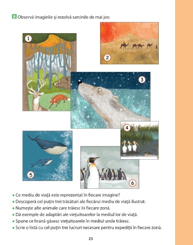 l Descoperă cel puţin trei trăsături ale fiecărui mediu de viaţă ilustrat.