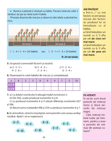 2 ∙ 3 ∙ 4 = 6 ∙ 4 = 24 (lalele) sau 2 ∙ 3 ∙ 4 = 8 ∙ 3 = 24 (lalele) pe cel de şase ori
