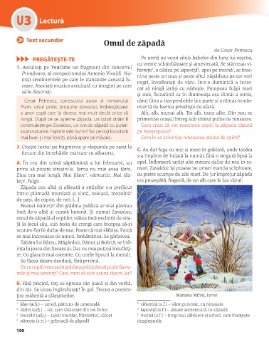 3 mozolit (adj.) – (aici) murdar, frământat, călcat 7 moină (s.f.) – timp mai călduros și umed, care însoțește