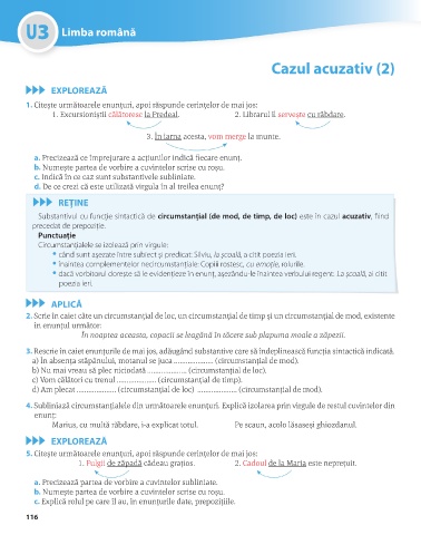 4. Subliniază circumstanțialele din următoarele enunțuri. Explică izolarea prin virgule de restul cuvintelor din