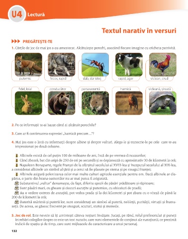 4. Mai jos este o listă cu informații despre albine și despre vulturi. Alege-le și transcrie-le pe cele care te-au