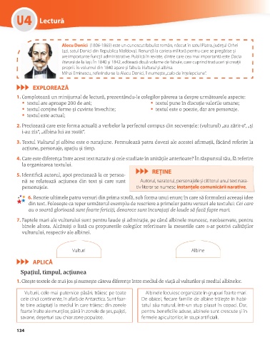 3. Textul Vulturul și albina este o narațiune. Formulează patru dovezi ale acestei afirmații, făcând referire la