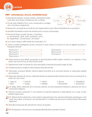 3. Formulează întrebări, pe baza textului, continuând începu-