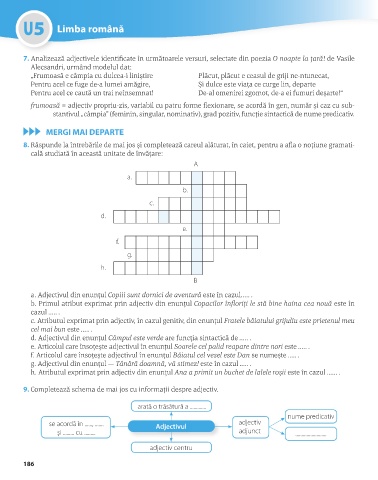 8. Răspunde la întrebările de mai jos și completează careul alăturat, în caiet, pentru a afla o noțiune gramati-