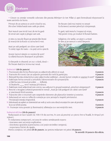 3. Notează funcția sintactică și cazul adjectivului subliniat: „Aceste lucruri simple ce veșnice îi sunt!“ 6 puncte