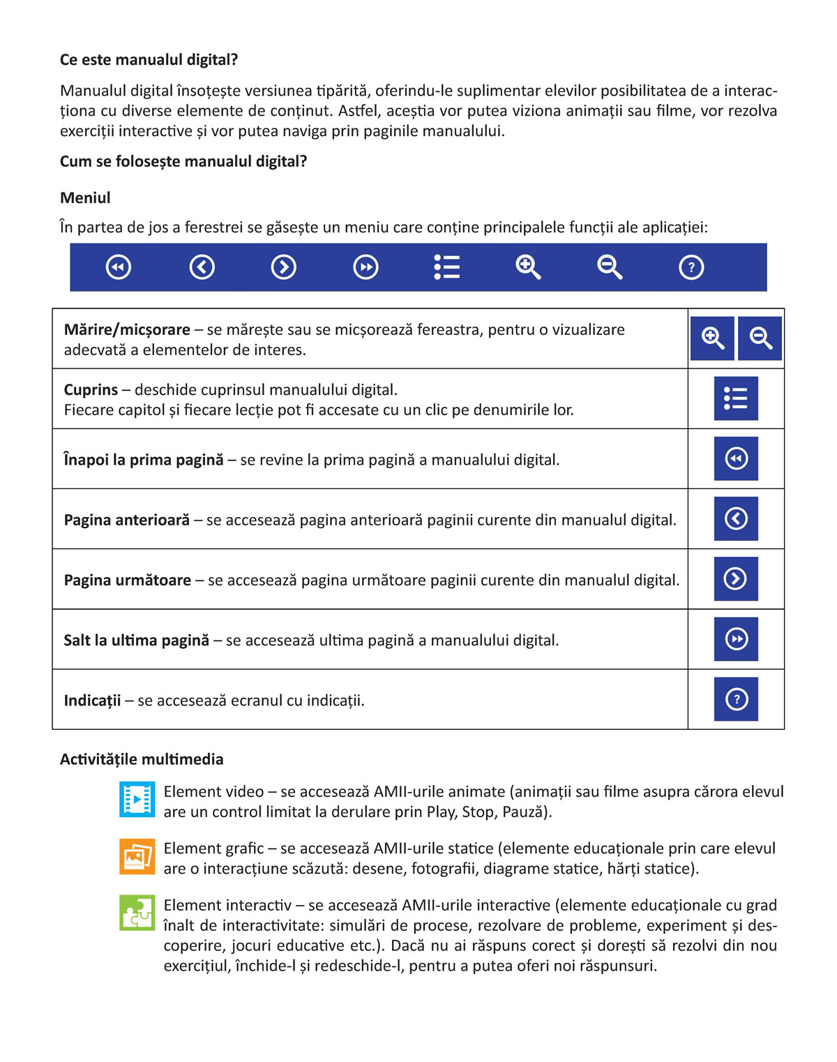 Activitățile multimedia sunt semnalizate în varianta digitală prin trei tipuri de iconuri.